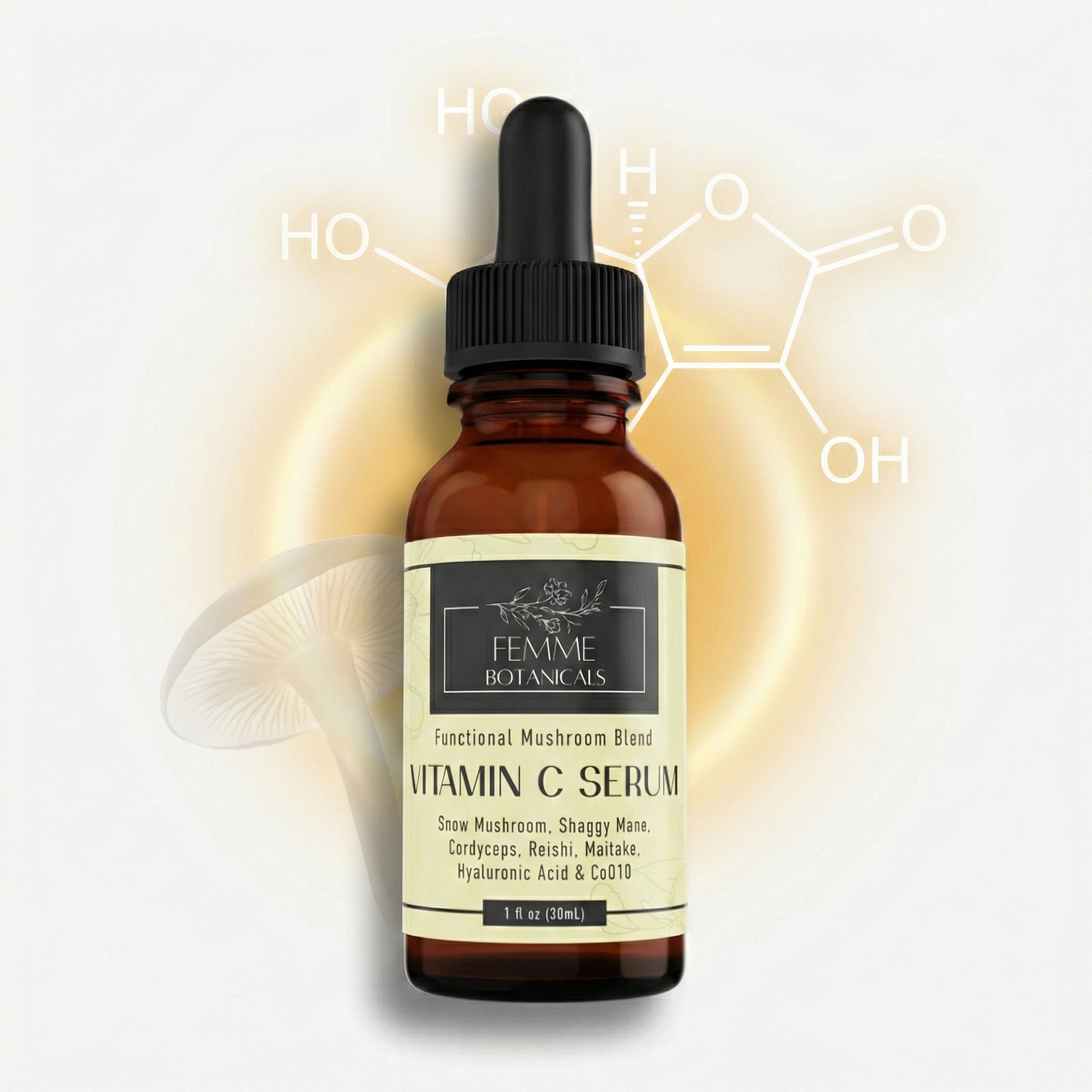Femme Botanicals' Vitamin C and Mushroom Facial Serum is a powerhouse formula that combines the finest natural ingredients to revitalize and transform your skin.